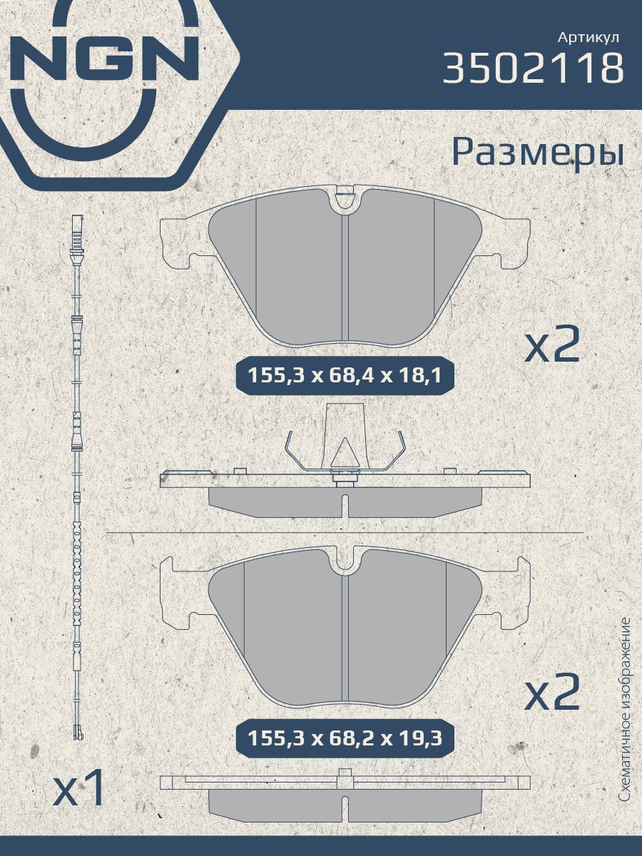 Колодки тормозные керамические, передние NGN 3502118. Для BMW 5(F10) 09> / 6(F12 / 3) 11> / 7(F01) 08>Комплектация: