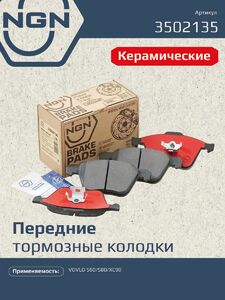 Колодки тормозные керамические передние NGN 3502135. Для VOVLO S60 00-10 S80 99-06 XC90 02
