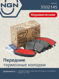 Колодки тормозные керамические передние NGN 3502145. Для CHEVROLET Malibu 12 OPEL Astra GTC 11 Insignia 1.4-2.8 08 Zafira C 11 SAAB 9-5 2.0-2.8T 10