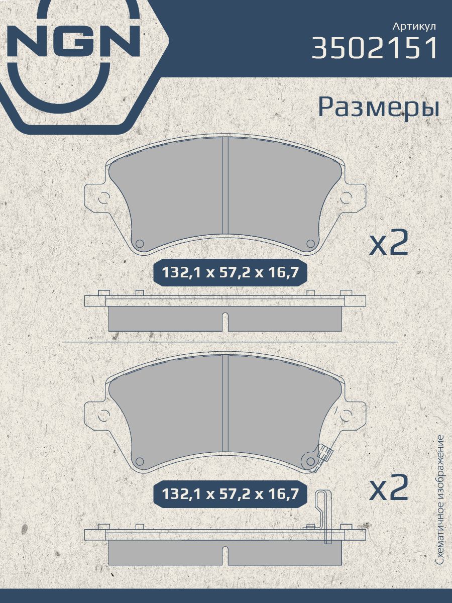 Колодки тормозные керамические, передние NGN 3502151. Для TOYOTA Corolla(E120) 02> / Corolla Verso 02-04Комплектация: