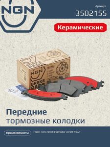 Колодки тормозные керамические, передние NGN 3502155. Для FORD EXPLORER 05-11 / EXPORER SPORT TRAC 06-10Комплектация: