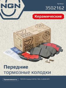 Колодки тормозные керамические передние NGN 3502162. Для TOYOTA Avanza I-II(F60 F65) 02 SUZUKI APV 05
