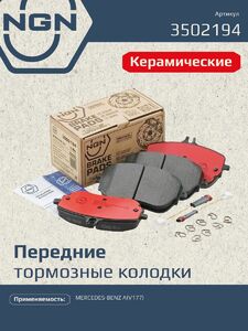 Колодки тормозные керамические, передние NGN 3502194. Для MERCEDES-BENZ A(V177) 18-Комплектация: