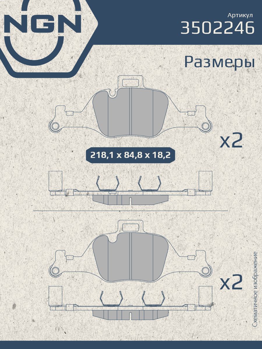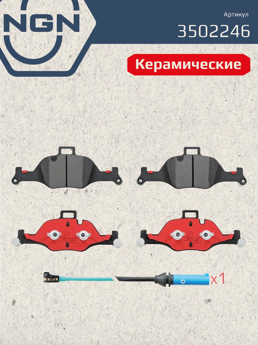 Колодки тормозные керамические, передние NGN 3502246. Для BMW 3(G20) 18> / 5(G30) 16> / 7(G11) 15> / X5(G05) 18> / X6(G06) 19>Комплектация: