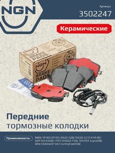 Колодки тормозные керамические передние NGN 3502247. Для BMW 1 19 2 13 3 18 5 16 X1 14 X2 17 X3 17 X4 18 TOYOTA Supra 19 MINI Clubman 14 Countryman 16
