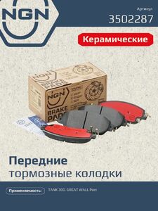 Колодки тормозные керамические, передние NGN 3502287. Для TANK 300 23>, GREAT WALL Poer 19>Комплектация: