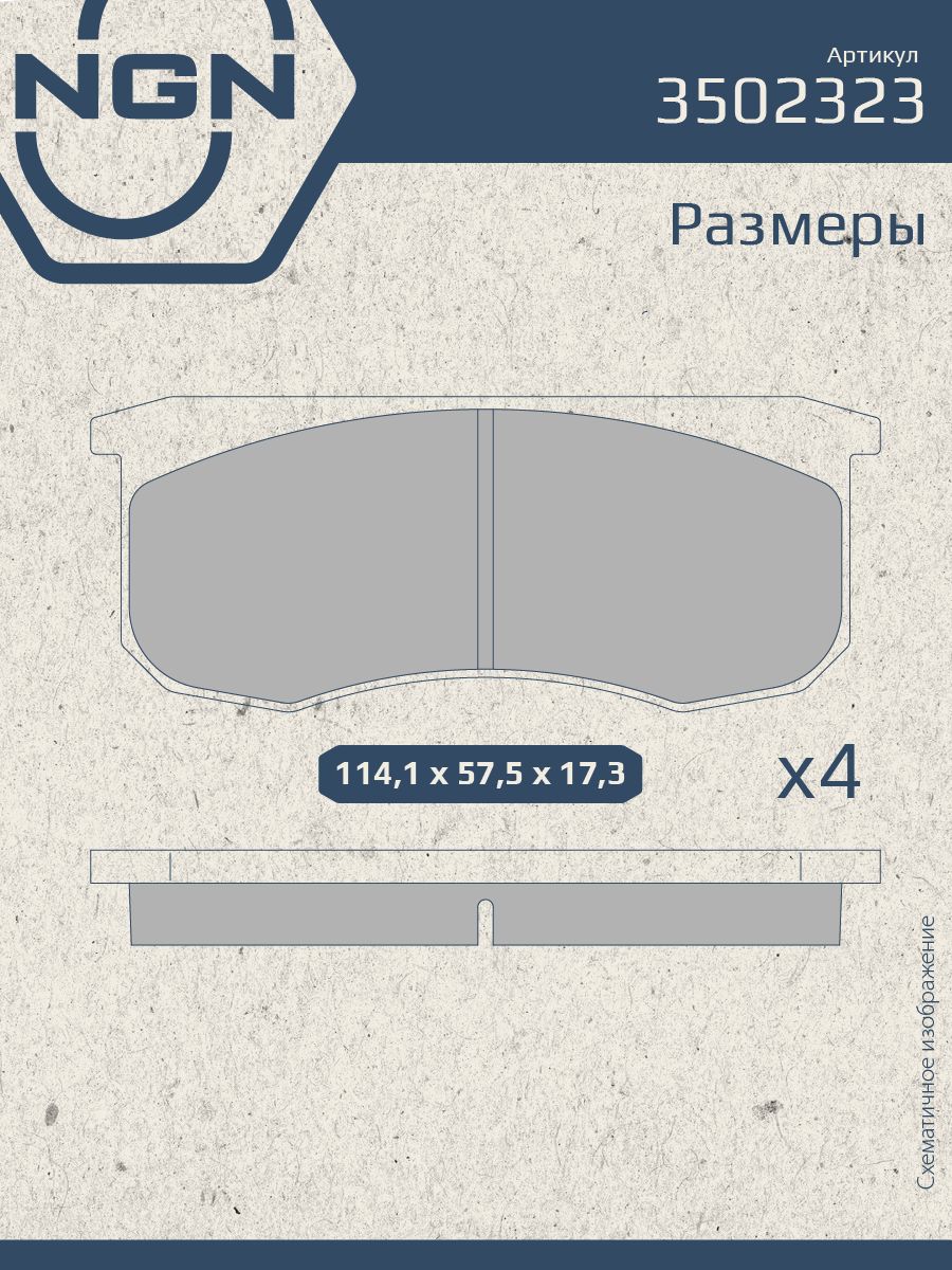 Колодки тормозные керамические передние NGN 3502323. Для UAZ Hunter 03 Patriot 97 31519/315195 97-19 3160/3162/3163/31631 97-19