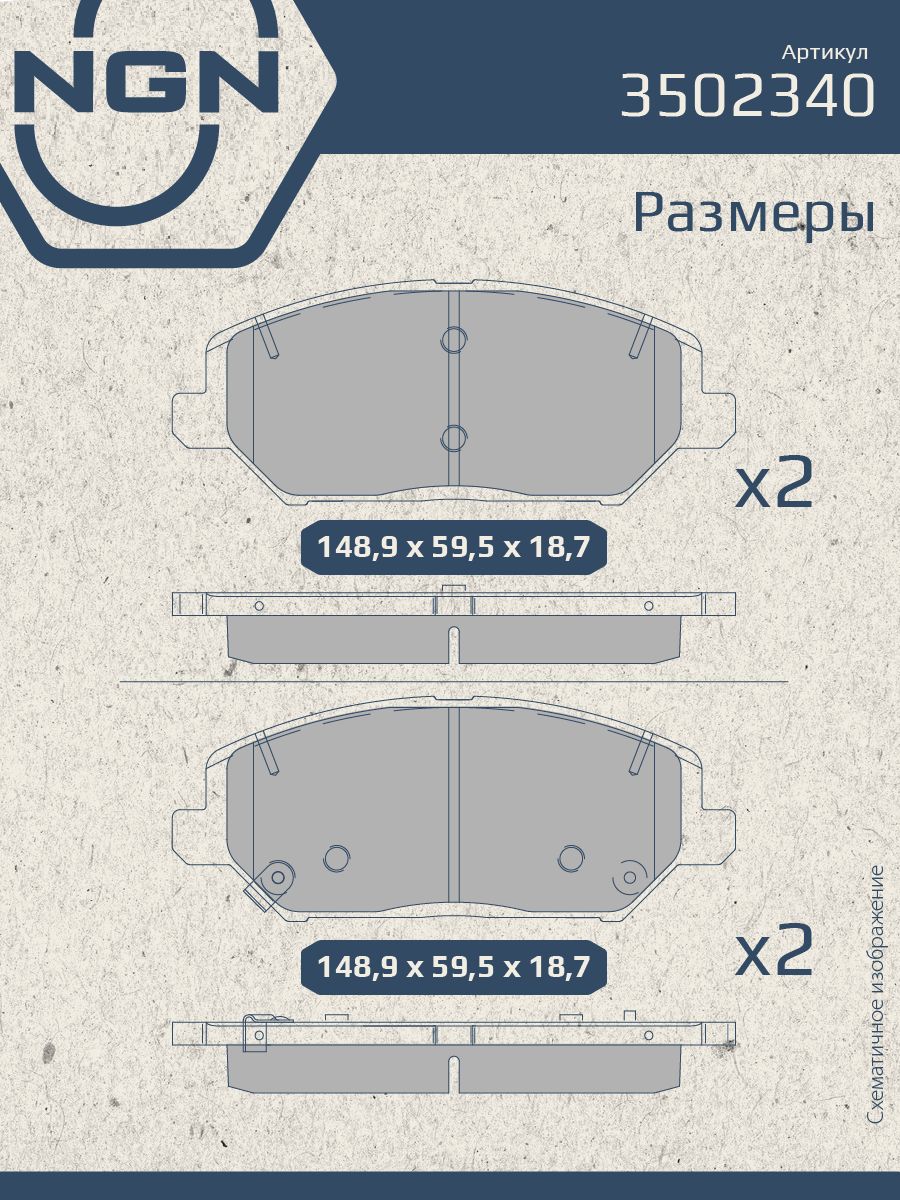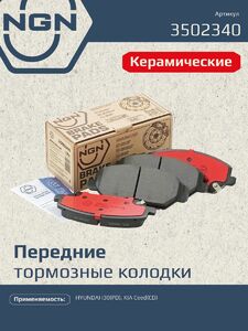 Колодки тормозные керамические, передние NGN 3502340. Для HYUNDAI i30(PD) 16>, KIA Ceed(CD) 18>Комплектация: