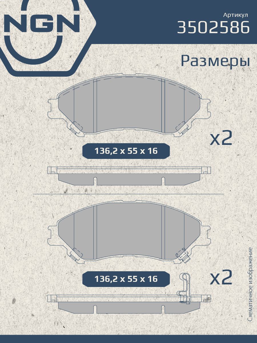 Колодки тормозные керамические, передние NGN 3502586. Для SUZUKI SX4 13> / VItara II 15>Комплектация: