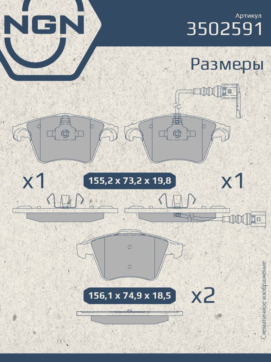 Колодки тормозные керамические, передние NGN 3502591. Для VW Multivan V 03> / Transporter V 03>Комплектация: