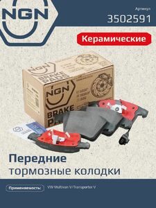 Колодки тормозные керамические передние NGN 3502591. Для VW Multivan V 03 Transporter V 03