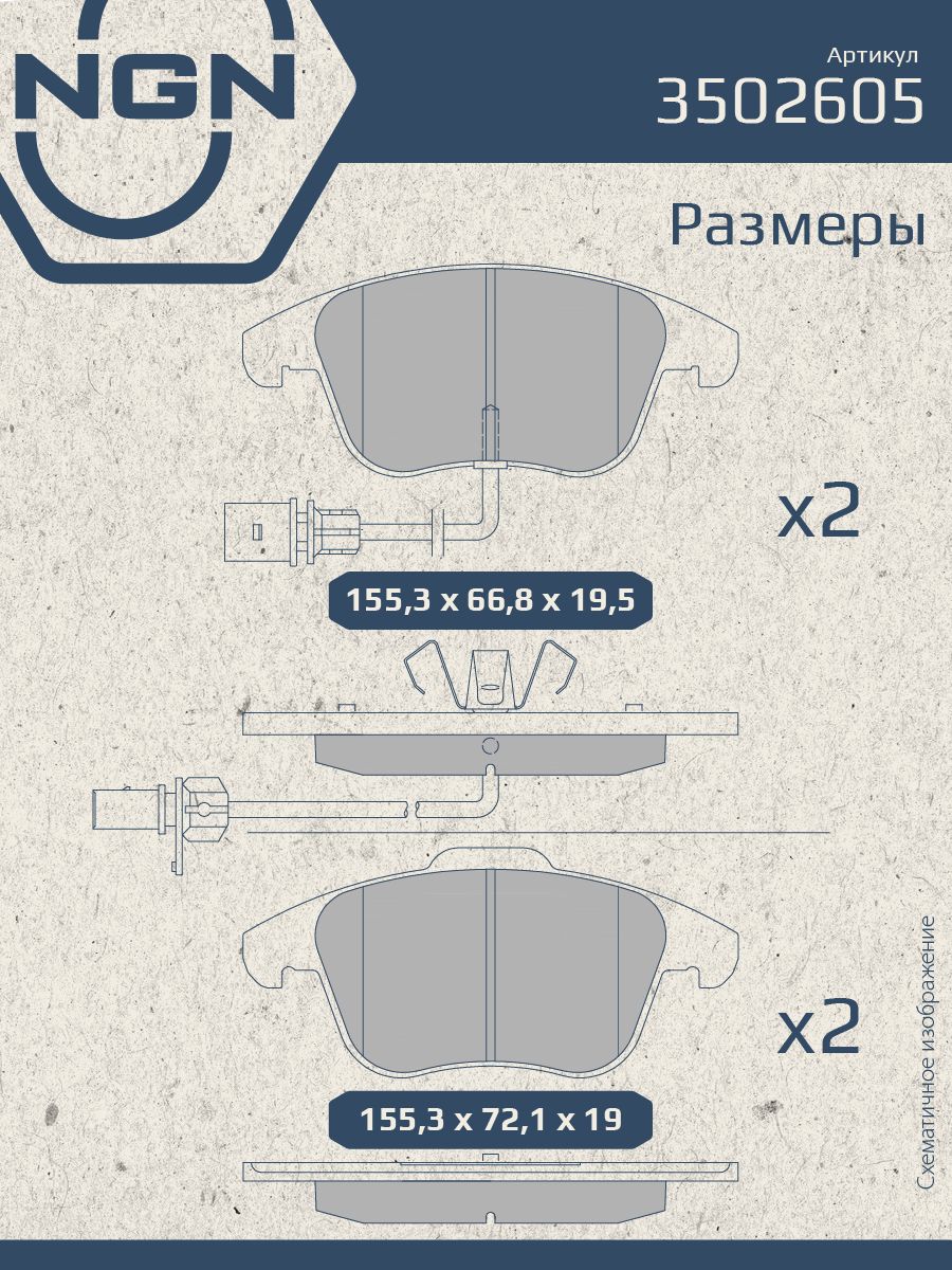 Колодки тормозные керамические, передние NGN 3502605. Для AUDI A4 07-15 / A5 07-17Комплектация: