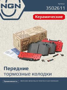 Колодки тормозные керамические, передние NGN 3502611. Для MERCEDES-BENZ ML230-55(W163) 98-05 / S320-600(W220) 98-05Комплектация: