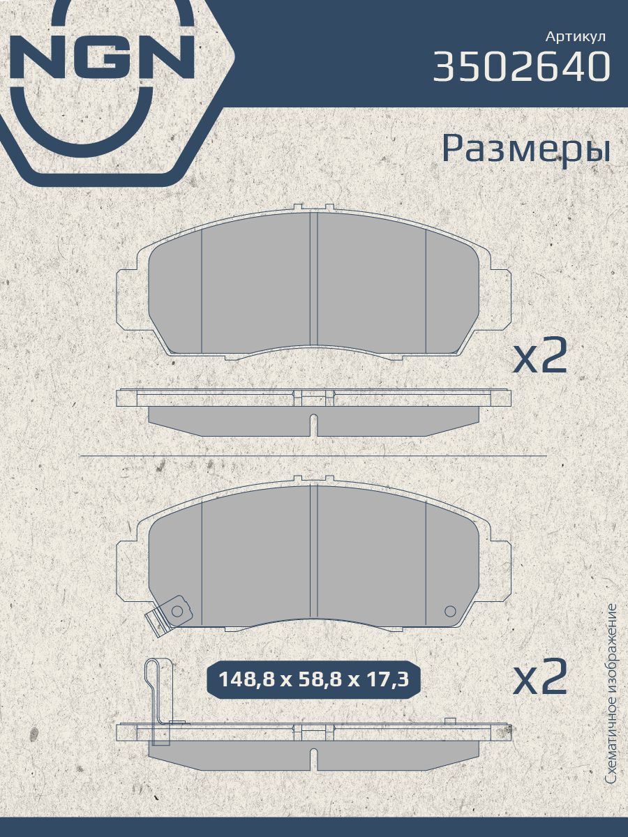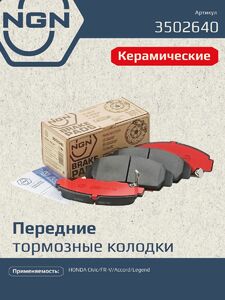 Колодки тормозные керамические, передние NGN 3502640. Для HONDA Civic 05> / FR-V 05> / Accord 03> / Legend 96-04Комплектация: