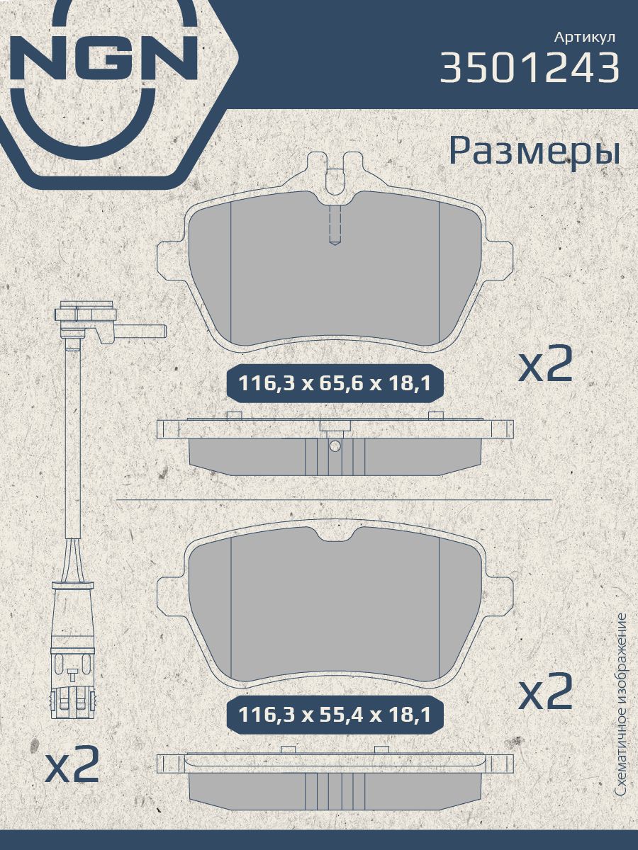 Колодки тормозные керамические, задние NGN 3501243. Для MERCEDES-BENZ S300D-500(W222) 13>Комплектация: