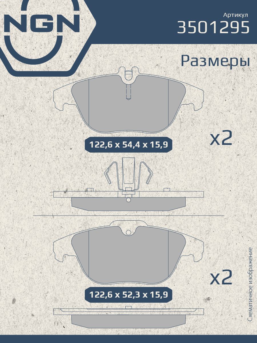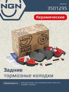 Колодки тормозные керамические, задние NGN 3501295. Для MERCEDES-BENZ C180-350(W204) 07> / E200K-500(C207) 09> / GLK200D-350(X204) 09>Комплектация: