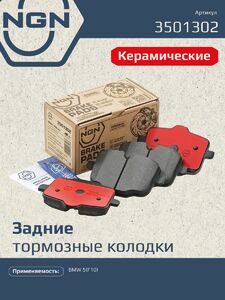 Колодки тормозные керамические, задние NGN 3501302. Для BMW 5(F10) 09>Комплектация: