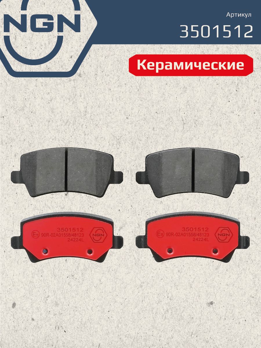 Колодки тормозные керамические, задние NGN 3501512. Для FORD Galaxy 06> / S-Max 06>, LAND ROVER Freelander 11> / Range Rover Evoque 11>, VOLVO S60 II 2.0-3.0T 10> / S80 II 1.6-3.0T 06> / XC60 2.0-3.0T 09> / XC70 2.4D-3.0T 08>Комплектация:
