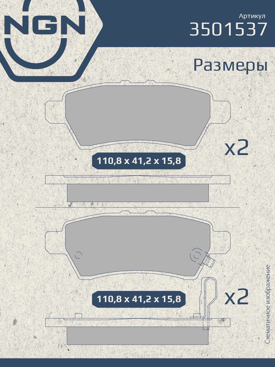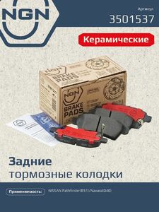 Колодки тормозные керамические, задние NGN 3501537. Для NISSAN Pathfinder(R51) 05> / Navara(D40) 05>Комплектация: