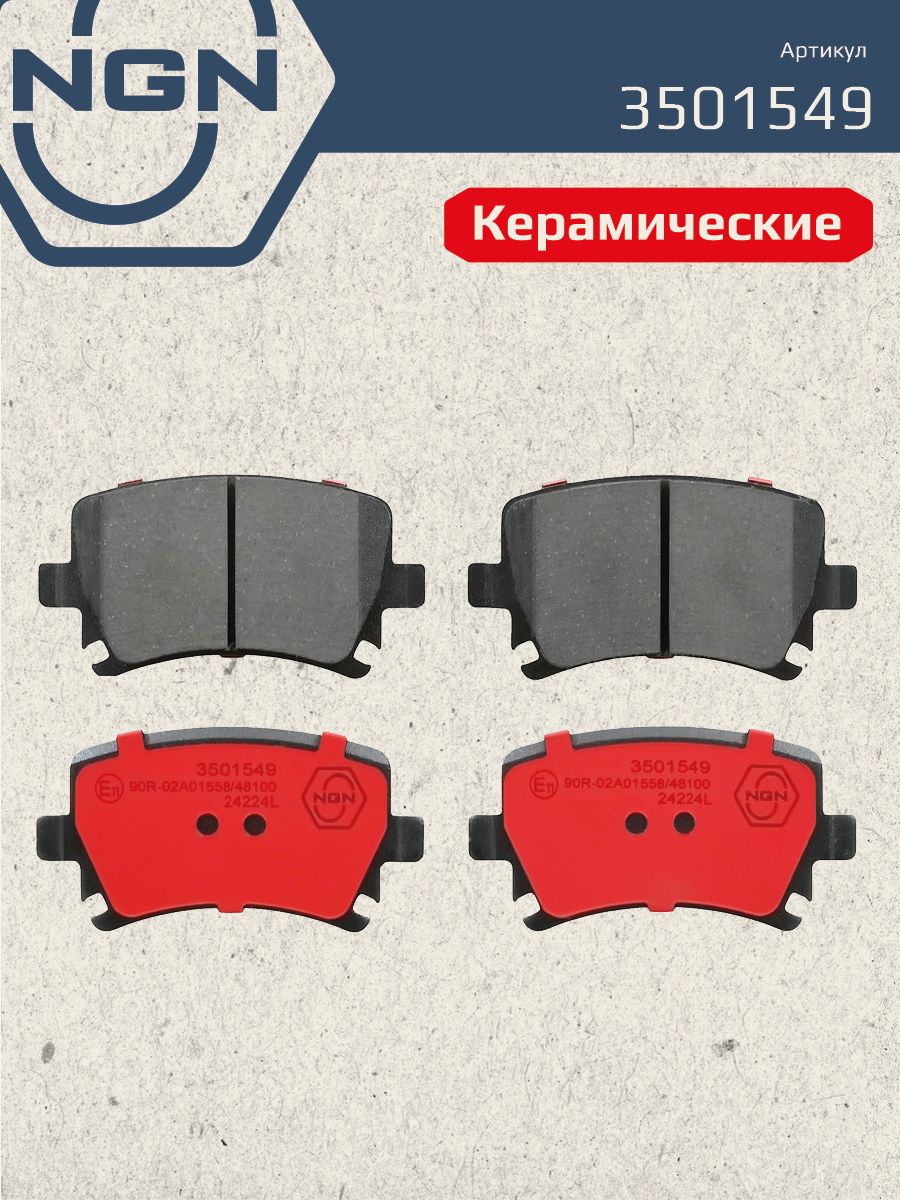 Колодки тормозные керамические, задние NGN 3501549. Для AUDI A3 03> / A4 00> / A6 04>, SKODA Octavia/Superb, VW Caddy III/Golf V/Jetta/Passat(B6)/Touran 03>Комплектация:
