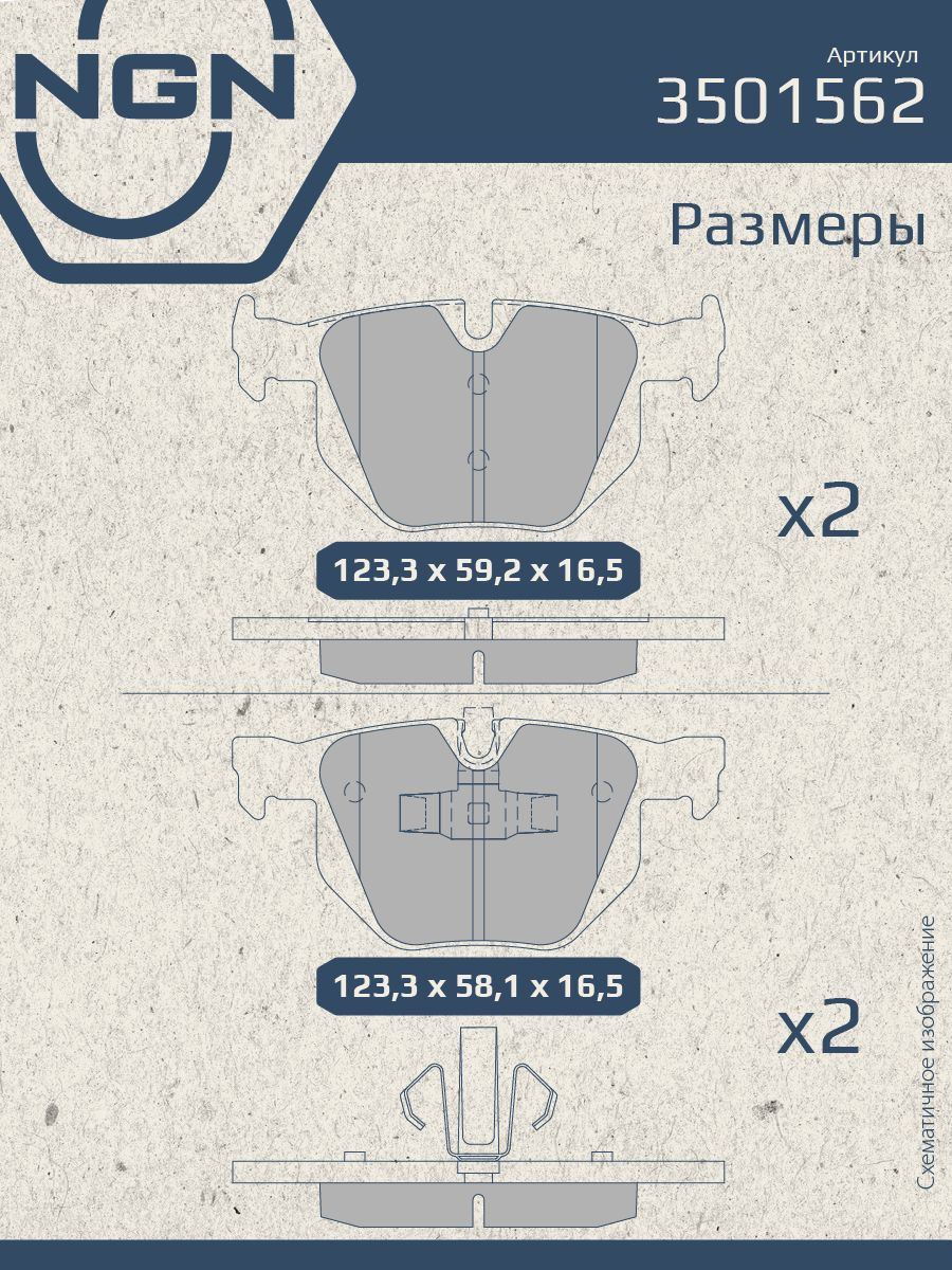 Колодки тормозные керамические, задние NGN 3501562. Для BMW 3(E90) 04> / X1(E84) 09>Комплектация: