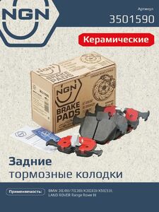 Колодки тормозные керамические, задние NGN 3501590. Для BMW 3(E46) 99-05 / 7(E38) 95-01 / X3(E83) 04> / X5(E53) 00>, LAND ROVER Range Rover III 02>Комплектация: