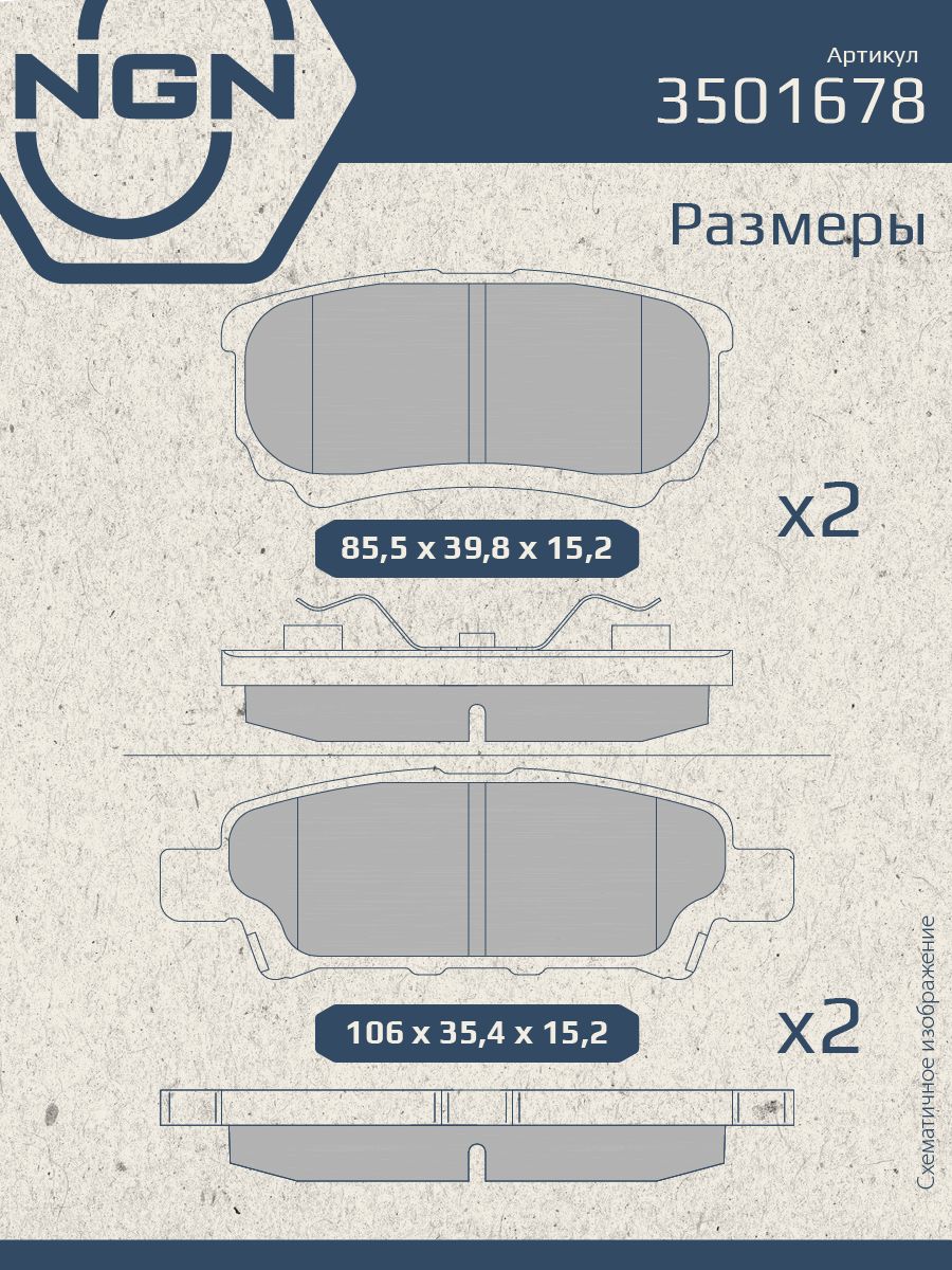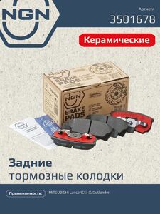 Колодки тормозные керамические, задние NGN 3501678. Для MITSUBISHI Lancer(CS)-X 03> / Outlander 03>Комплектация: