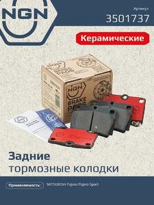 Колодки тормозные керамические, задние NGN 3501737. Для MITSUBISHI Pajero/Pajero Sport 97>Комплектация: