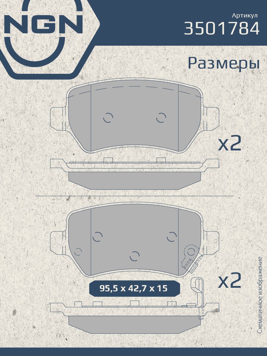 Колодки тормозные керамические, задние NGN 3501784. Для KIA Ceed(JD) 12>Комплектация: