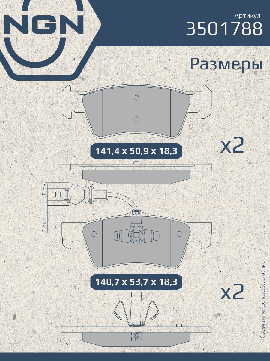 Колодки тормозные керамические, задние NGN 3501788. Для VW Touareg I 02>Комплектация:
