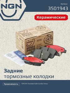 Колодки тормозные керамические задние NGN 3501943. Для TOYOTA Avensis(T25) 03-08/Corolla Verso 04