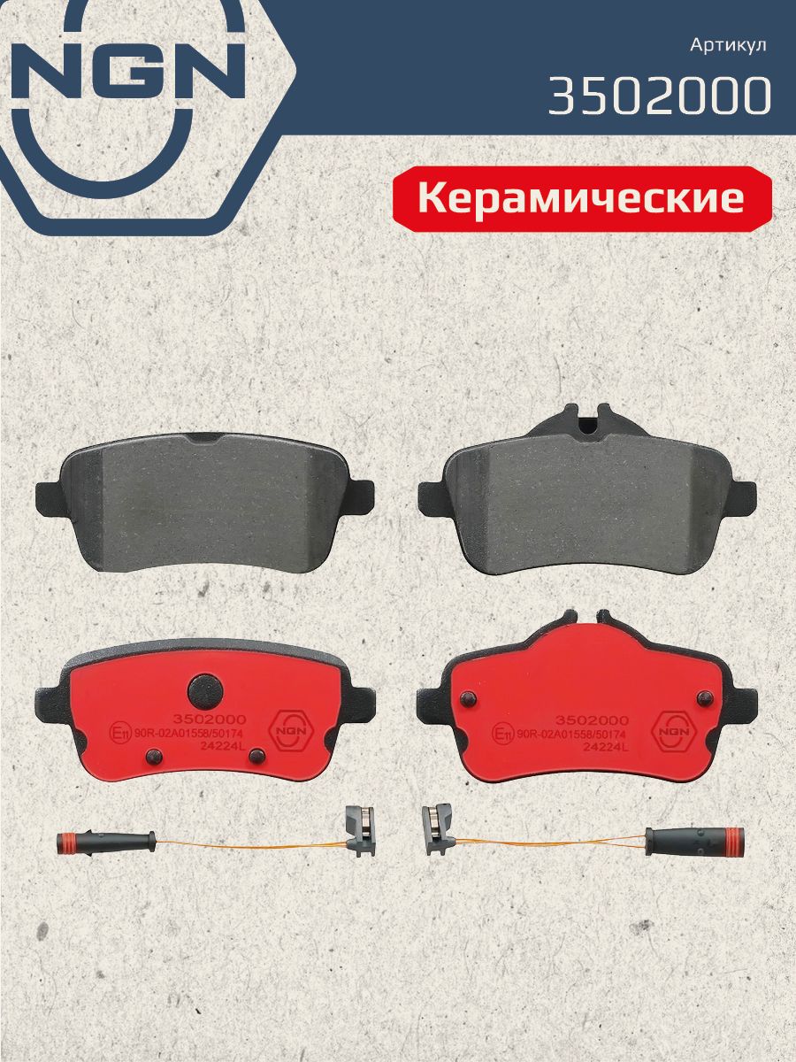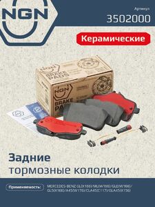Колодки тормозные керамические, задние NGN 3502000. Для MERCEDES-BENZ GL(X166) 12> / ML(W166) 11> / GLE(W166) 15> / GLS(X166) 15> / A45(W176) 15> / CLA45(C117) 13> / GLA45(X156) 15>Комплектация: