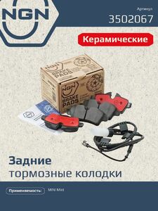 Колодки тормозные керамические, задние NGN 3502067. Для MINI Mini 06-15Комплектация: