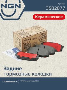 Колодки тормозные керамические, задние NGN 3502077. Для TOYOTA Land Cruiser(200) 08>Комплектация: