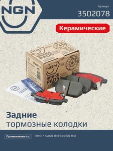 Колодки тормозные керамические, задние NGN 3502078. Для TOYOTA Auris(E150) 07> / Corolla(E150) 06>Комплектация: