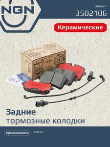 Колодки тормозные керамические, задние NGN 3502106. Для AUDI A8 09-18Комплектация:
