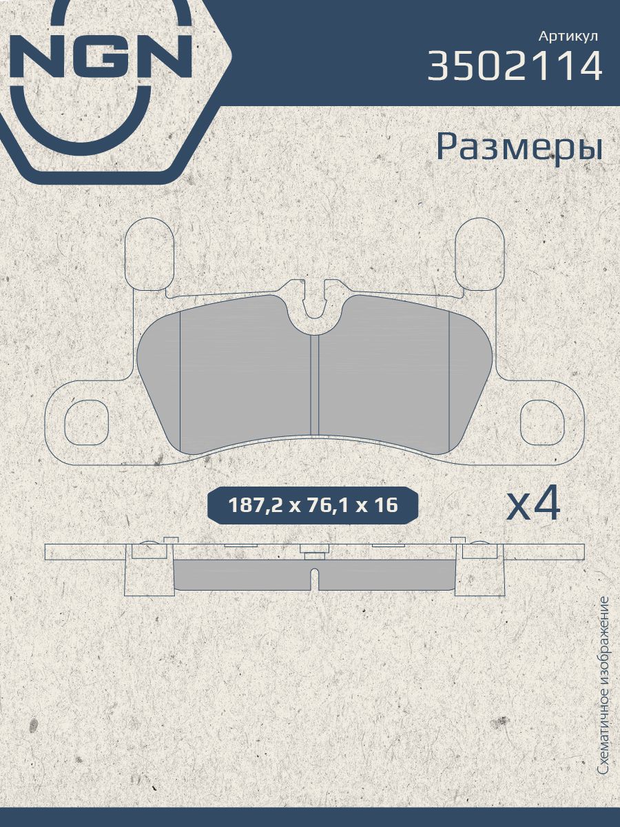 Колодки тормозные керамические, задние NGN 3502114. Для PORSCHE Cayenne II 10>Комплектация: