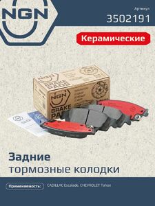 Колодки тормозные керамические, задние NGN 3502191. Для CADILLAC Escalade 14>, CHEVROLET Tahoe 15>Комплектация: