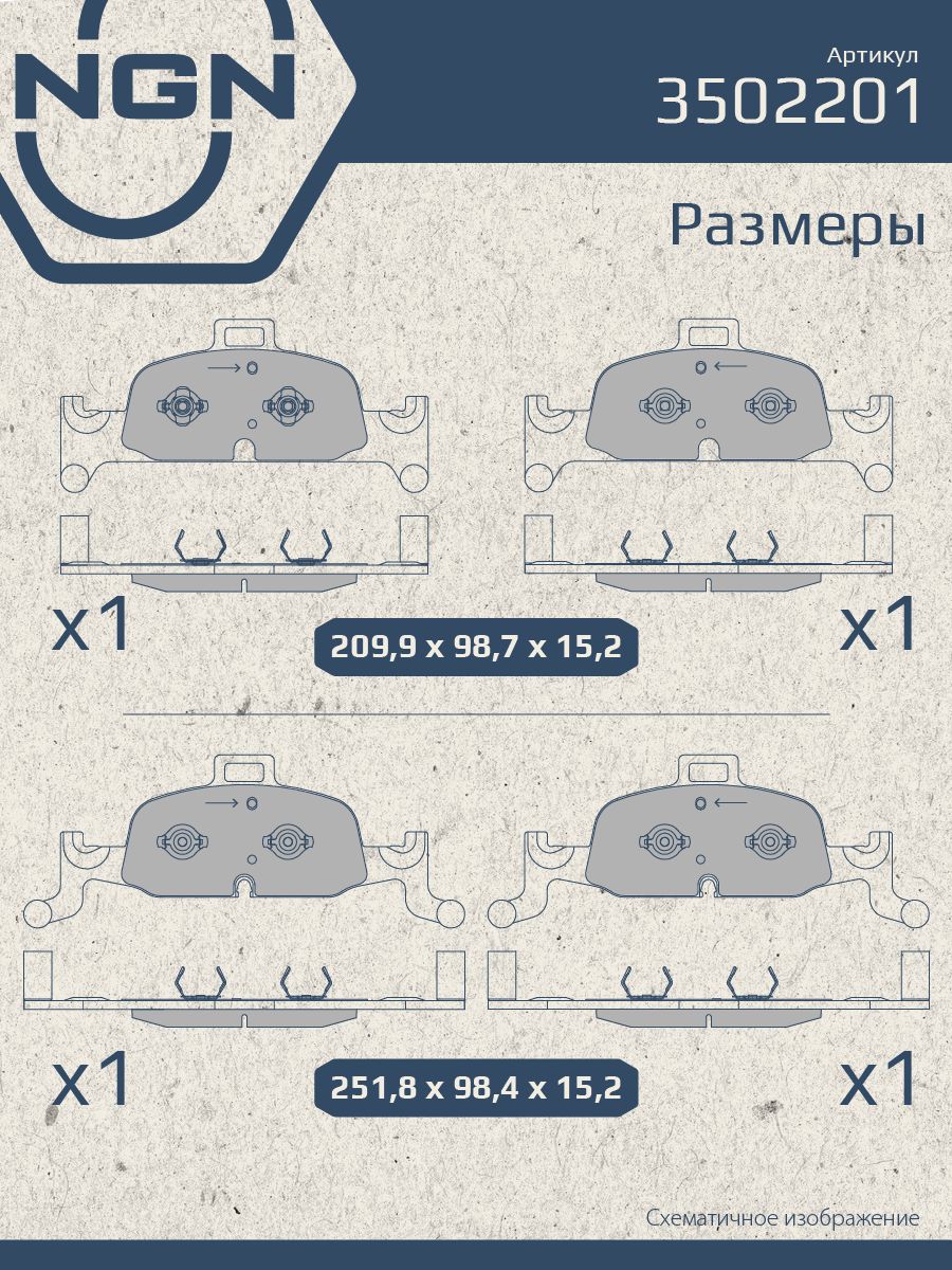 Колодки тормозные керамические, задние NGN 3502201. Для AUDI A4 15> / A5 16> / A6 18> / A7 18> / Q5 16>Комплектация: