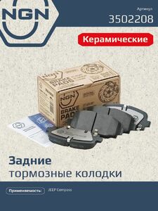Колодки тормозные керамические, задние NGN 3502208. Для JEEP Compass 16>Комплектация: