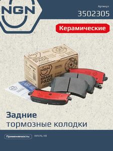Колодки тормозные керамические задние NGN 3502305. Для HAVAL H9 14