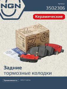 Колодки тормозные керамические, задние NGN 3502306. Для GEELY Coolray 18>Комплектация: