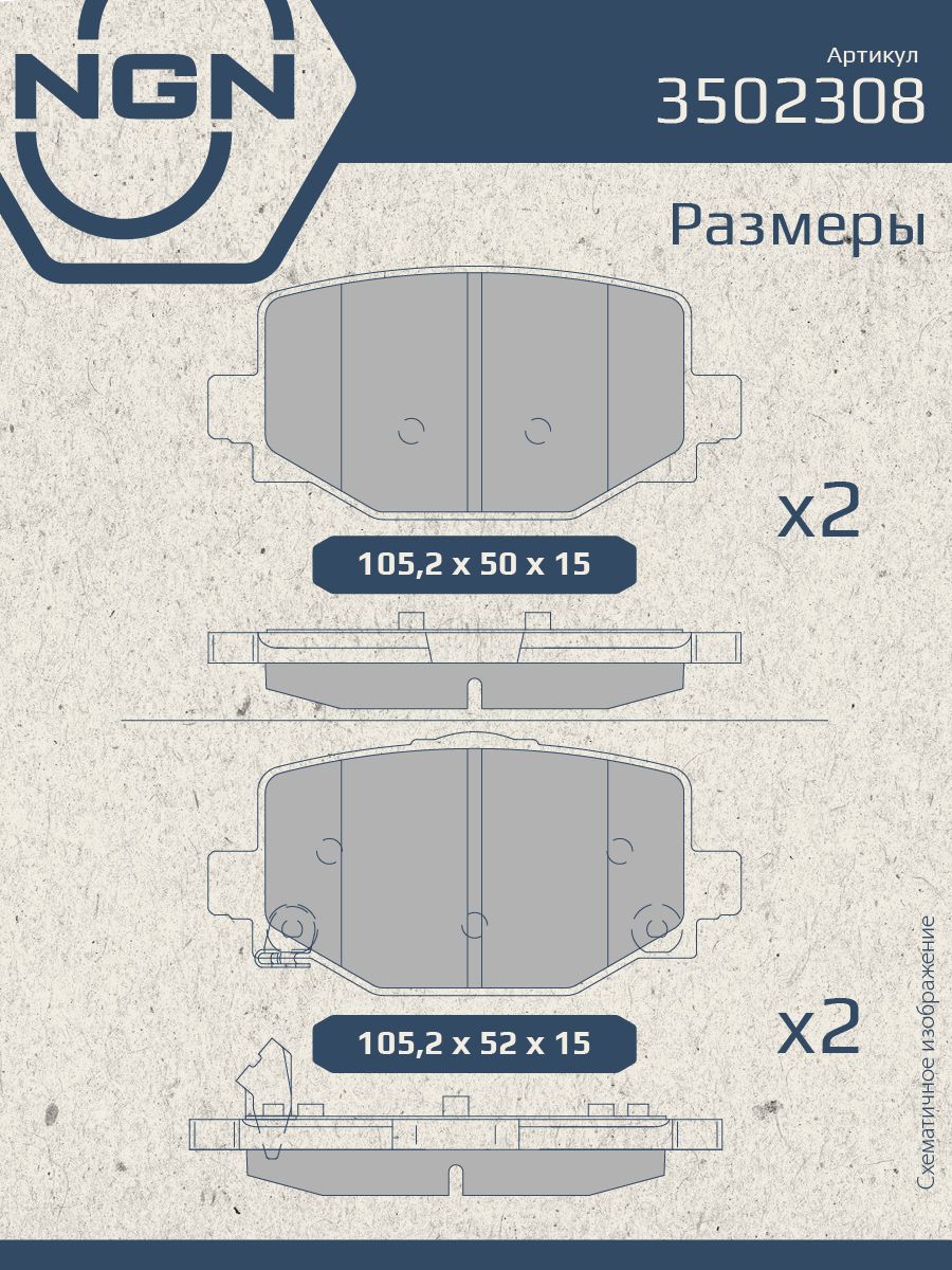 Колодки тормозные керамические, задние NGN 3502308. Для INFINITY QX50 17> / QX55 21>Комплектация: