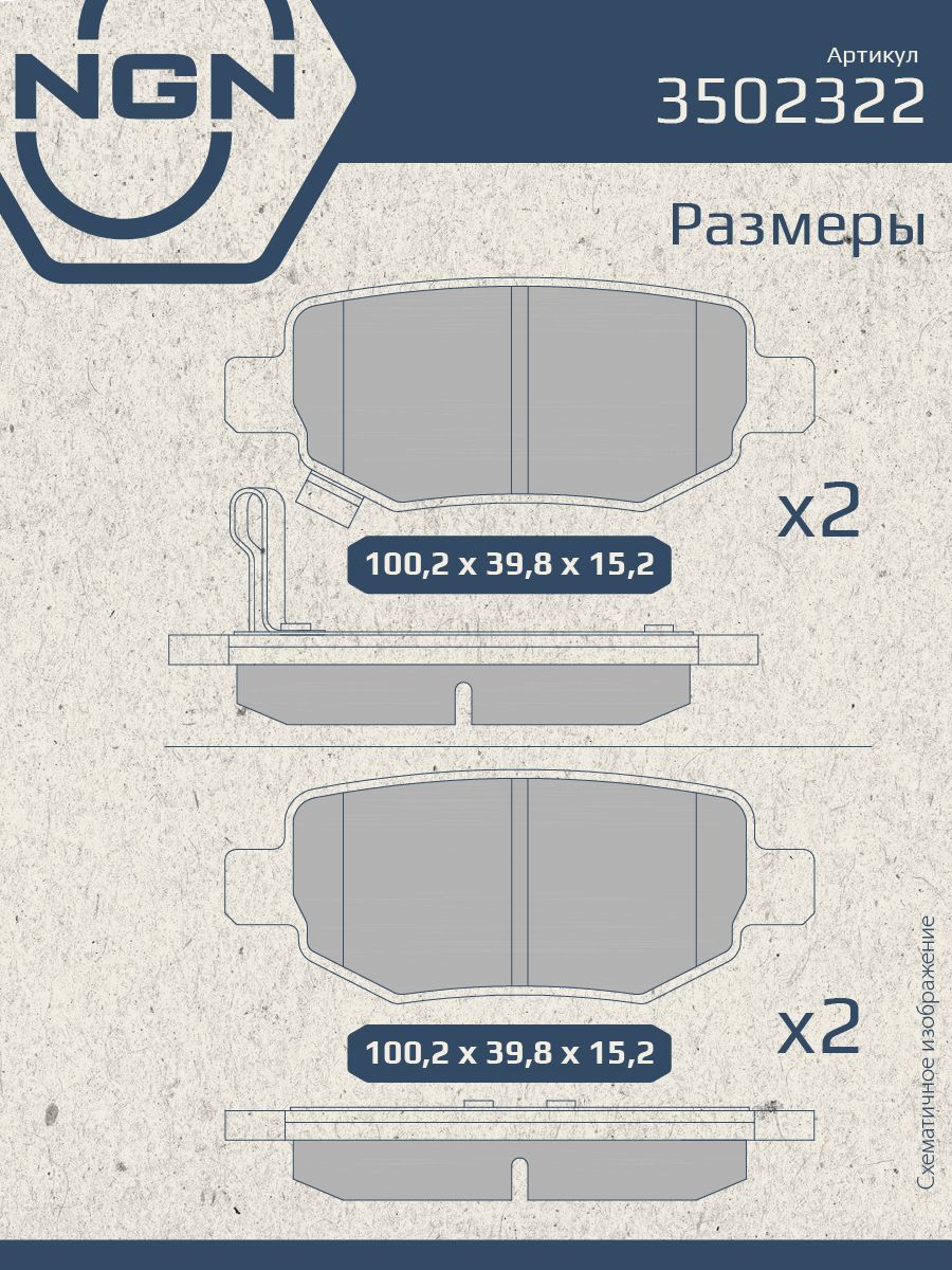 Колодки тормозные керамические, задние NGN 3502322. Для CHERY Tiggo 3 14-20 / Tiggo 4 17> / Tiggo 8 18> / Tiggo 8 Pro 21> / Tiggo T11 05-14Комплектация: