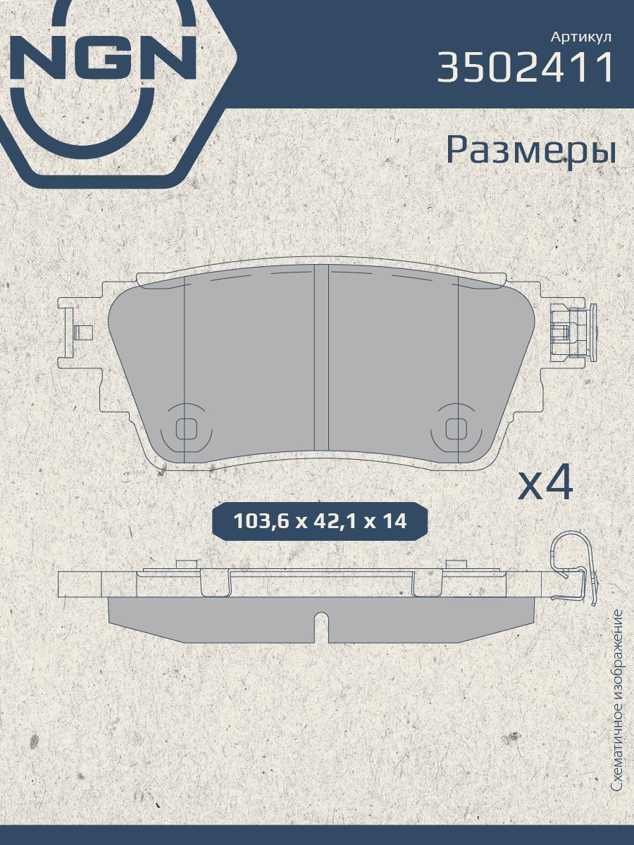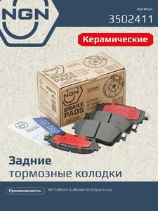 Колодки тормозные керамические, задние NGN 3502411. Для MITSUBISHI Outlander III 10> / Eclipse Cross 17>Комплектация: