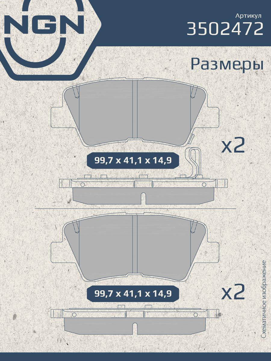 Колодки тормозные керамические, задние NGN 3502472. Для HYUNDAI Sonata VII 14> / Tucson 15>, KIA Sportage IV-V 15>Комплектация: