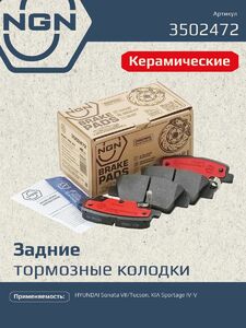Колодки тормозные керамические задние NGN 3502472. Для HYUNDAI Sonata VII 14 Tucson 15 KIA Sportage IV-V 15