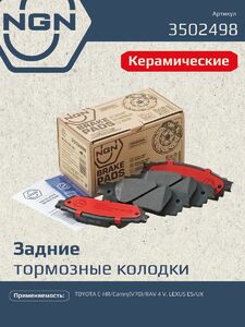 Колодки тормозные керамические, задние NGN 3502498. Для TOYOTA C-HR 16> / Camry(V70) 17> / RAV 4 V 18>, LEXUS ES 18> / UX 18>Комплектация: