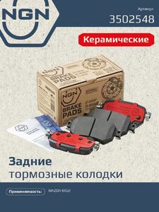 Колодки тормозные керамические, задние NGN 3502548. Для MAZDA 6(GJ) 13>Комплектация: