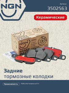 Колодки тормозные керамические, задние NGN 3502563. Для PORSCHE Panamera 09> / 911 11>Комплектация: